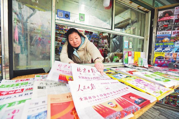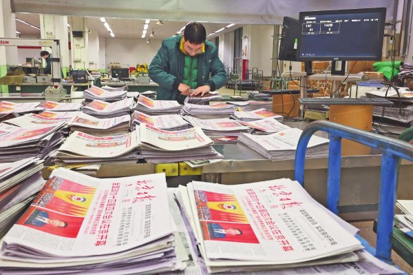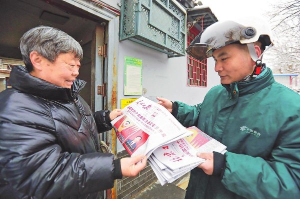 投遞員送達當(dāng)日《人民日報》