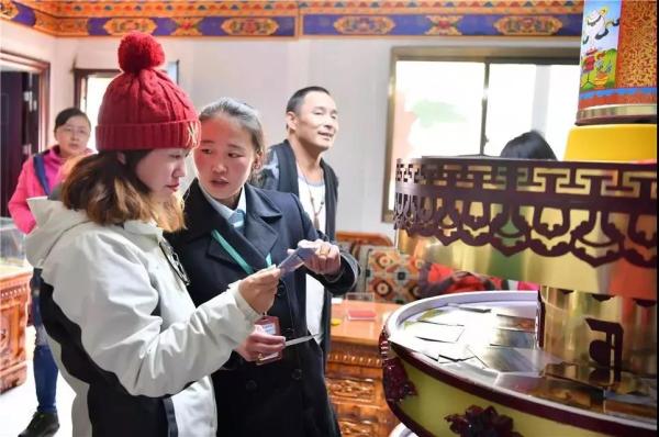 扎什倫布寺,來自香港的游客在展示中國郵政設計制作的景區(qū)門票。西藏郵政以深度融合西藏旅游文化、西藏民俗文化和郵政文化為核心,以郵政先進的網絡、技術為支撐,服務景區(qū),服務游客,融入西藏旅游發(fā)展熱潮,助推西藏旅游經濟的發(fā)展。