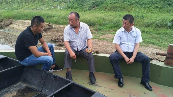 他(左一)前往江蘇,實(shí)地走訪船舶貸款客戶