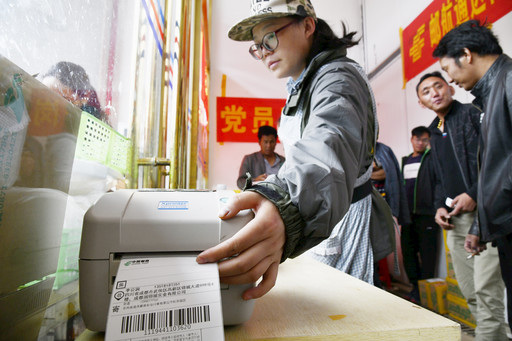 郵政“黨員突擊隊”隊員在為客戶打印面單。