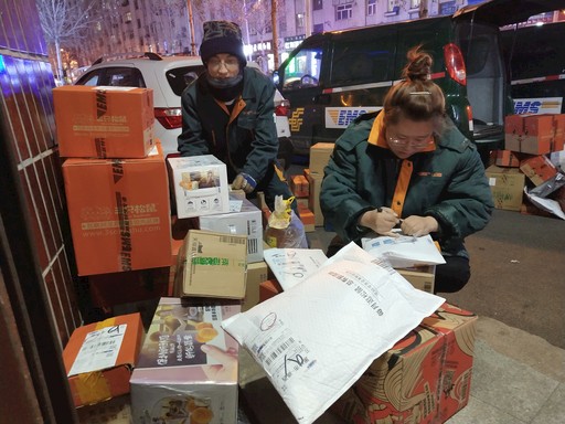 吳濤是黑龍江省雞西市郵政寄遞事業(yè)部的一名攬投員,今年是他第7年奮戰(zhàn)“雙11”。吳濤的妻子熟知攬投作業(yè)流程,每年“雙11”都會(huì)前來(lái)幫忙投遞郵件,是得力的“外援”。出班時(shí),吳濤負(fù)責(zé)開車,他妻子則在一旁打電話預(yù)約投遞,到達(dá)攬投區(qū)域后,兩人又分頭投遞郵件?! 蹴n建香 攝