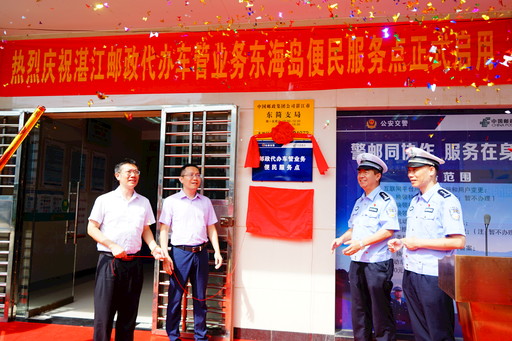 8月24日,廣東湛江郵政代辦車管業(yè)務(wù)東海島服務(wù)點揭牌,該服務(wù)點可以辦理補換領(lǐng)機動車號牌、行駛證、駕駛證等業(yè)務(wù),車主或駕駛?cè)酥恍枥U納郵政快遞費和車管牌證工本費,便可享受到“送證到家”服務(wù)。