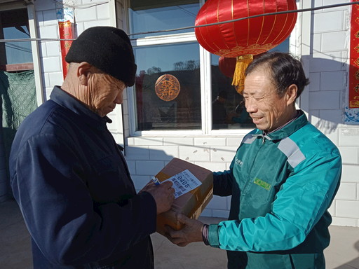 “茂田叔,這是您親戚從內(nèi)蒙古包頭寄來的包裹,還有我給您從縣城藥店捎回來的藥以及藥品的說明書。我托人在A4紙上放大又重新印了一份,也在袋子里放著呢,啥時候快吃完了就招呼我一聲。眼瞅著就快過年了,家里頭都張羅妥沒?缺啥您就張口。”在曹家窯村村民林茂田家,劉錦富一邊遞上包裹與藥,一邊熱情地與老人打著招呼。林茂田的子女都在外地工作,平時只有他和老伴兒在村子里,劉錦富常常利用工作之余幫著老人打理一下家務(wù),順道捎帶一些必需品和常用藥品。“這馬上就過年了,你還歇不下了?”林大爺有些心疼地問?!芭R近過年了,不少快遞公司都停業(yè)了,但我們郵政是快遞的‘國家隊’,講的是責(zé)任與擔(dān)當(dāng),全年無休。有人的地方就要有郵政,一份報紙也要送,一個包裹也得投?!眲㈠\富邊說邊往門外走去。