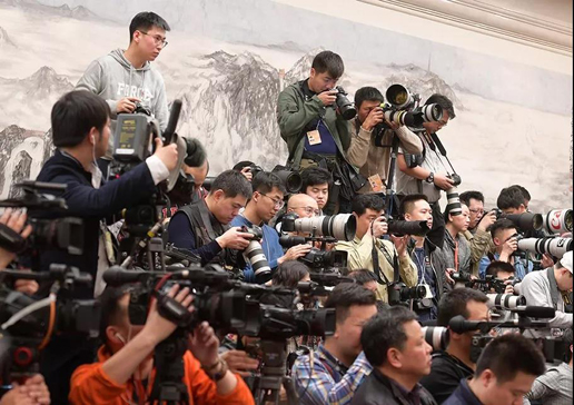 為了能夠拍攝到好照片、采訪到委員,各媒體的小哥哥小姐姐們可謂絞盡腦汁,有的記者帶了簡直比高蹺還要高3厘米的梯子,有的記者笑臉如花,先把問題拋出去,話筒遞上去,根本不給政協(xié)委員拒絕的機(jī)會(huì)。有的政協(xié)委員剛接受完采訪,第二波記者又來了,一波接著一波。