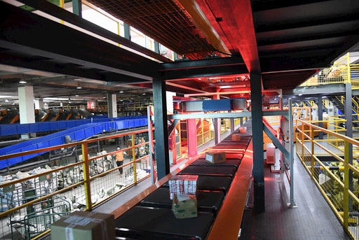 運轉中的第二套雙層包裹自動分揀機。
