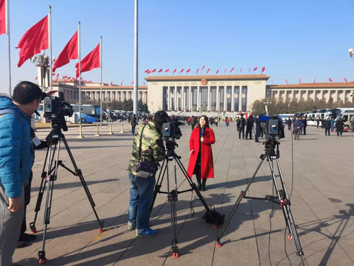 一說起添彩,還有今天報道會議開幕的女主持人、女記者,站在天安門廣場上,口播新聞,一遍一遍,只為了以最佳的姿態(tài)、最好的面貌出現(xiàn)在觀眾面前。