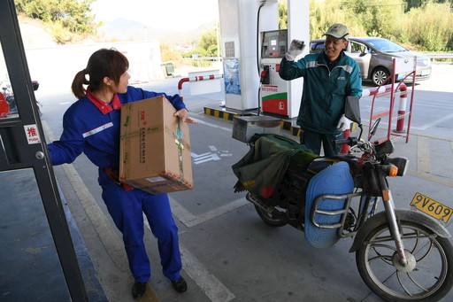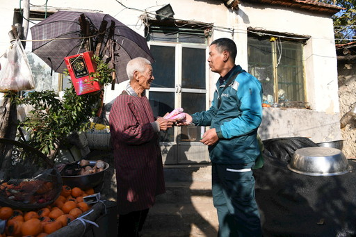 徐西國(guó)在送郵件的同時(shí),為住在山頂?shù)墓r(nóng)尹緒忠捎些生活日用品。