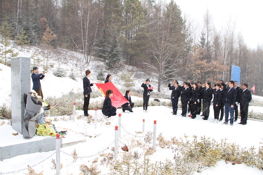 雙鴨山市分公司黨員在“十二烈士山”墓碑前進行了獻花、掃墓、重溫入黨誓詞和宣讀倡議書等,通過重走抗聯(lián)路,尋訪革命先烈的紅色記憶。□姜雪瑤 攝影報道