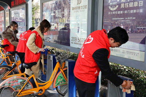 3月4日,郵儲銀行浙江省湖州市分行團委開展“弘揚新時代文明 學習雷鋒好榜樣”活動,組織青年志愿者一起在湖州市人民路、連家巷路一帶的公共汽車站臺和公共自行車站臺進行清潔美化,以實際行動展示郵儲銀行“綠色金融”的社會擔當與良好形象。管史璇 攝影報道
