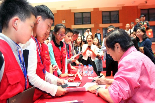 5月10日,“與藝術(shù)大師面對(duì)面”韓美林上海郵迷見(jiàn)面會(huì)在上海市郵政分公司郵政大樓中庭舉行。見(jiàn)面會(huì)上,韓美林講述了自己的“郵票情緣”,并為從四面八方趕來(lái)的各個(gè)年齡段的郵迷在己亥年生肖郵品和集郵文化叢書(shū)《美林郵緣》上簽名,還特地為多位“資深郵迷”手繪生肖豬。一位排了3小時(shí)隊(duì)拿到大師簽名的年輕郵迷激動(dòng)地說(shuō):“我特地連夜從杭州乘火車(chē)趕來(lái),能夠一睹大師風(fēng)采,覺(jué)得特值?!眻D為韓美林為慕名前來(lái)的《小主人報(bào)》的小記者們簽名?! 跎虾S浾?nbsp; 周煉 攝影報(bào)道