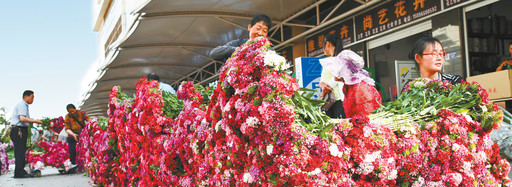 “鮮花論斤賣,賣花像賣菜”,描繪的是云南昆明的斗南花市,這是亞洲最大、世界第二的花卉交易市場,被譽為“亞洲花都”,上市鮮花100個大類、1600多個小品種,每天有1000-1200噸鮮切花從這里通過航空、鐵路、公路運往全國80多個城市,遠銷50多個國家和地區,是全國花卉市場的“風向標”和花卉價格的“晴雨表”。