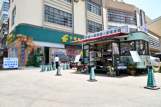 主題郵局的網紅打call地—“宥一間花屋@愛花大叔”流動花車。