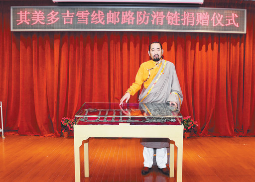 7月9日,其美多吉雪線郵路防滑鏈捐贈儀式在中國郵政郵票博物館舉行。“時代楷模”其美多吉介紹說,防滑鏈是保障雪線郵路郵車駕駛員安全的主要工具,是翻雀兒山、過冰雪路的必需品。防滑鏈見證了其美多吉三十年如一日用青春和生命為民服務、用鮮血和汗水忠誠履職的奮斗歷程,見證了郵政人服務政治穩定、民族團結、經濟發展、社會進步、人民幸福的職責使命,見證了艱苦奮斗、勇于創新、不畏艱險、默默奉獻的交通精神。其美多吉先進事跡報告團成員參加了捐贈儀式。