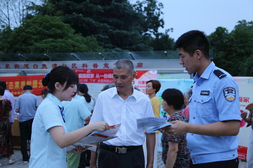 7月8日,由浙江省湖州市吳興區(qū)掃黑辦、區(qū)公安分局聯(lián)合市郵政分公司開展的掃黑除惡進(jìn)村入社暨防詐騙熱線宣傳活動在龍泉街道白魚潭社區(qū)啟動。該活動通過現(xiàn)場宣傳和文藝表演的方式向廣大社區(qū)居民宣講掃黑除惡知識,解答防詐騙熱線的功能和作用。活動中,快板說唱、舞蹈、有獎問答等寓教于樂的節(jié)目受到群眾的熱烈歡迎。