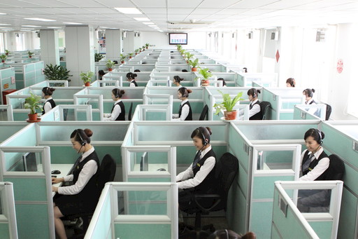 在每名座席員的工位上都放著一個(gè)大大的水杯,有的工位上放著兩個(gè)甚至三個(gè),趙雪嬌說,這是為了節(jié)省打水的時(shí)間。長時(shí)間在一線的座席員,由于每天不停地說話,很多人都患上了不同程度的咽炎,除了緊張的午飯時(shí)間之外,他們大部分時(shí)間都是坐在工位上接聽來自全國各地的、遇到各種問題的客戶電話。趙雪嬌笑著說:“我現(xiàn)在能聽懂好多地方的方言呢?!?/p>