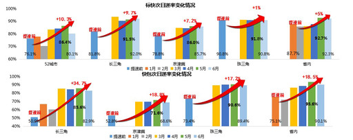 今年以來,全國郵政圍繞“強網絡、抓提速、提品質”,優化網路架構與管控模式,寄遞業務時限水平明顯提升。其中,52個重點城市、“長珠環”、省內互寄三大重點管控區域時限水平逐步提升(5月達到最好水平,6月受南方暴雨及“618”電商促銷影響指標略有波動)。(圖表來源:集團公司寄遞事業部)