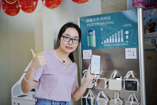 五四廣場所免費為客戶提供自助手機充電站,貼心服務(wù)獲“點贊”。