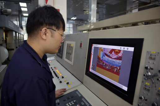 北京郵票廠工作人員謹慎地操作著設備,力求將郵票完美呈現(xiàn)。邸亞崢 攝
