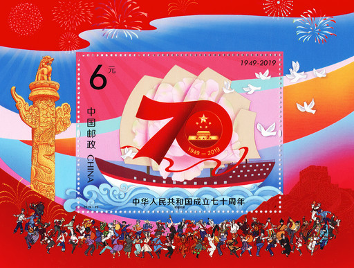 中國郵政即將于10月1日發(fā)行《中華人民共和國成立七十周年》紀(jì)念郵票一套5枚,小型張1枚,即從“五位一體”總體布局的角度進(jìn)行展示。郵票名稱分別為“經(jīng)濟(jì)持續(xù)健康發(fā)展”“社會主義民主政治推進(jìn)”“文化繁榮興盛”“人民生活不斷改善”“建設(shè)美麗中國”,小型張圖案名稱為“祝福祖國”。另與香港郵政、澳門郵電共同印制發(fā)行同題材小型張本票1本,內(nèi)含中國郵政、香港郵政、澳門郵電小型張各1枚。