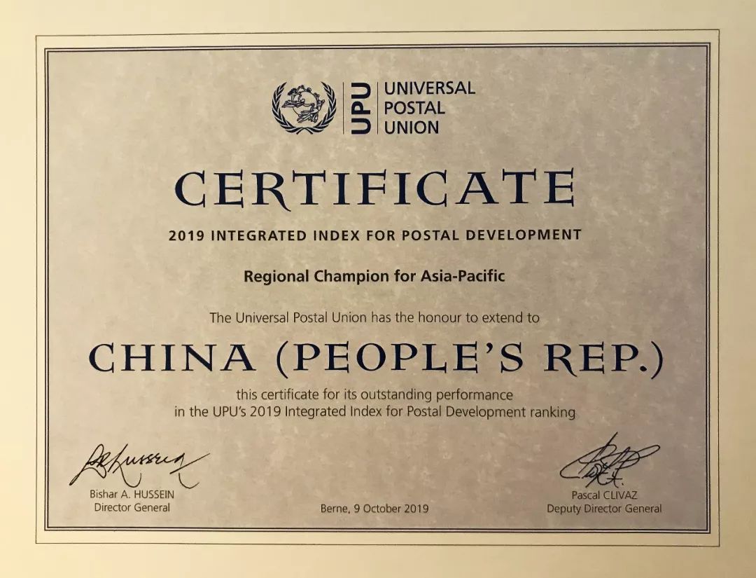 10月9日,萬國郵政聯(lián)盟(以下簡稱萬國郵聯(lián))在瑞士伯爾尼總部舉辦一系列活動隆重慶祝145周年生日,同時公布了2019年郵政綜合發(fā)展指數(shù)排名,瑞士、荷蘭、德國排名前三位,中國郵政取代新加坡,首次在亞太區(qū)排名第一,榮獲亞太區(qū)冠軍,在全球排名第15位。
