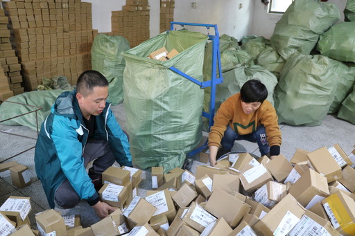 在混合收寄處,8名工作人員一字排開(kāi),根據(jù)系統(tǒng)提示迅速將攬收回來(lái)的包裹,按照省際、省內(nèi)、長(zhǎng)三角3個(gè)區(qū)域放置到對(duì)應(yīng)的傳送帶上,他們動(dòng)作嫻熟,爭(zhēng)分奪秒。伴隨著“啪啪啪”的包裹落帶聲,堆成小山似的包裹很快被運(yùn)送到分揀處進(jìn)行細(xì)分?!啊p11’前,我們?yōu)檫@8臺(tái)混合收寄設(shè)備做了一次全面‘體檢’,確保設(shè)備在旺季期間能夠發(fā)揮最大功效?!蔽淞x縣寄遞事業(yè)部副總經(jīng)理任霞說(shuō)。混合收寄系統(tǒng)上線后,郵件收寄處理效率從以前的每小時(shí)1300件提高到2800件,為投遞環(huán)節(jié)贏得了寶貴的時(shí)間。