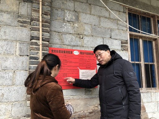 陳澤維向6組貧困戶龐召華的妻子詳細講解可享受的低保、教育資助、危房改造補貼、無障礙廁所改造、免交合作醫(yī)療費用等扶貧保障政策。在布袋溪村,每家貧困戶門前都張貼著“扶貧干部到我家”的公示牌。