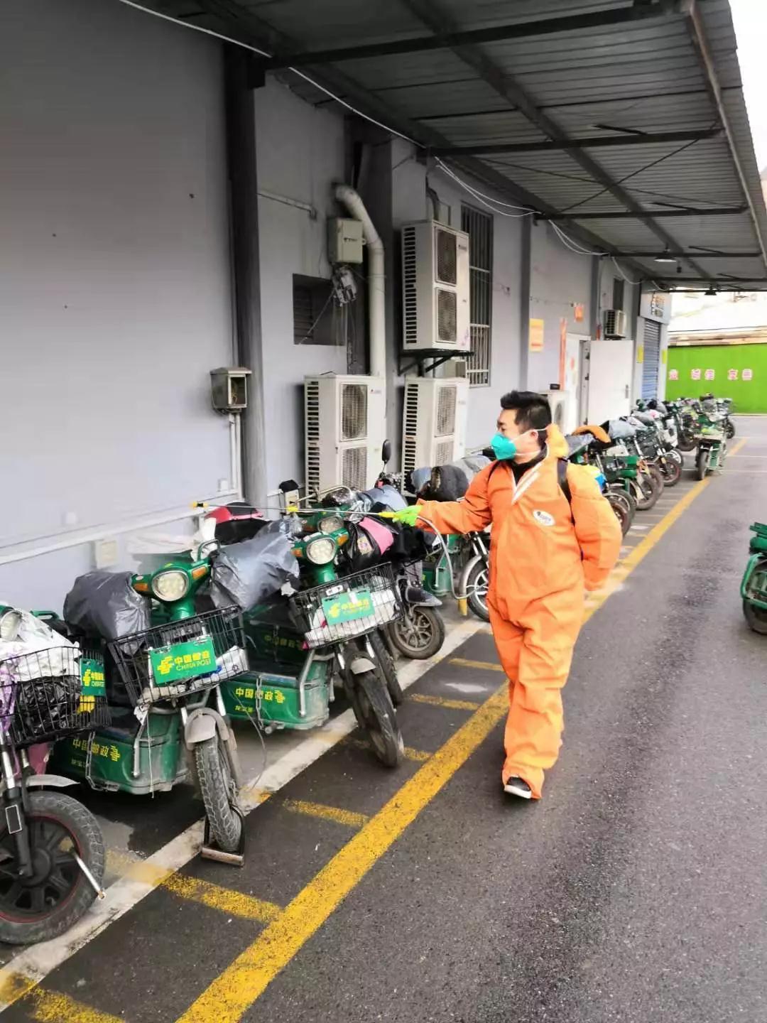 徐龍所工作的上海路投遞站位于武漢市中心,投遞范圍內(nèi)有武漢市中心醫(yī)院與商職醫(yī)院兩個收治感染患者的定點醫(yī)院,還有上百家藥房。隨著疫情形勢越來越嚴峻,來自五湖四海的防疫物資源源不斷來到投遞站,等待投遞。作為醫(yī)護人員家屬,徐龍比其他同事更加懂得防護的重要性。每天七點鐘不到,徐龍就會趕到投遞站,主動趕在同事們上班之前做好站點和郵件的消毒工作?!胺浅r期,每個人都想做點什么,這也是我們的家。”