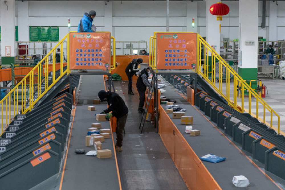 記者在現(xiàn)場看到,數(shù)名戴著口罩的工作人員正在郵件分揀輔助設(shè)備上緊張工作,傳送帶上的郵件包裹經(jīng)辨認(rèn)后會(huì)被放置于不同目的地的小隔欄中,央珍的就業(yè)材料也將在此被分揀后運(yùn)送到目的地。