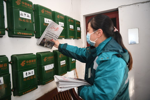 湖南省郵政分公司優(yōu)化網(wǎng)運(yùn)作業(yè)組織和生產(chǎn)流程,縮短投遞內(nèi)部作業(yè)時(shí)限,讓投遞員提早出班,全力以赴做好黨報(bào)黨刊投遞工作,將黨中央關(guān)于疫情防控工作的最新指示精神及時(shí)、準(zhǔn)確傳遞到千家萬戶。湖南省分公司為投遞網(wǎng)點(diǎn)配備了洗手液、消毒液、測溫儀,每隔兩小時(shí)對(duì)投遞作業(yè)現(xiàn)場進(jìn)行消毒,出班前、歸班后對(duì)攬投車輛進(jìn)行噴灑消毒;為投遞人員配備了醫(yī)用口罩,并在到崗和歸班時(shí)進(jìn)行體溫檢測,體溫正常方可上崗。圖為2月11日,長沙市分公司車站路攬投員楊望歸在芙蓉區(qū)五里牌社區(qū)投遞當(dāng)日《人民日?qǐng)?bào)》。 記者 劉園園 攝影報(bào)道