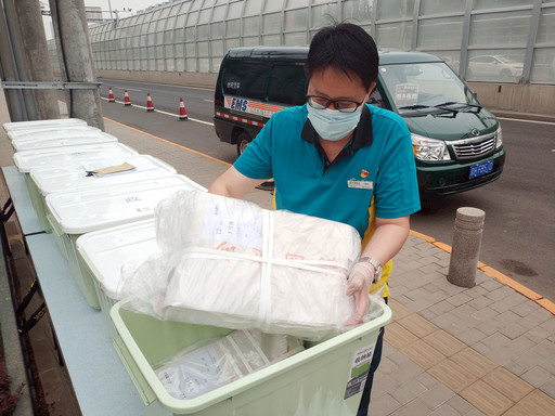 今年全國兩會(huì)期間,按照兩會(huì)總務(wù)組提出的“全封閉、無接觸”原則,北京郵政采取“定點(diǎn)無接觸式投遞”方式配送報(bào)刊、信件等郵件,并使用專用箱對(duì)兩會(huì)郵件進(jìn)行統(tǒng)一消毒,確保兩會(huì)郵政服務(wù)與疫情防控工作萬無一失。圖為北京郵政工作人員在代表、委員駐地外對(duì)兩會(huì)用報(bào)進(jìn)行核對(duì)(核對(duì)無誤后由代表、委員駐地相關(guān)工作人員接收)。 □記者 楊光 攝影報(bào)道