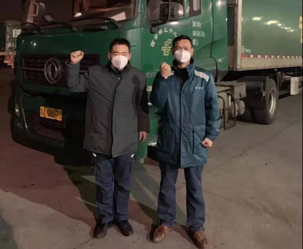 繼張忠海和先進員工喬毅軍這對“黃金搭檔”第一次逆行開路之后,同事們紛紛請纓,自愿向武漢“逆行”。當時,陜西向武漢援助的各種醫(yī)療物資急劇增加,西安郵區(qū)中心局根據(jù)情況陸續(xù)又增加了兩輛35噸級的郵車,組成三組臨時車隊,為了防控感染,實行定車定人,包括張忠海、喬毅軍在內共六名司機專線為武漢運送抗疫醫(yī)療物資。