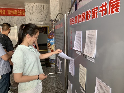 6月15日,“邢臺(tái)郵政廉政家書”展板在河北省邢臺(tái)市郵政分公司一樓大廳展出,吸引不少郵政員工前來閱讀。
