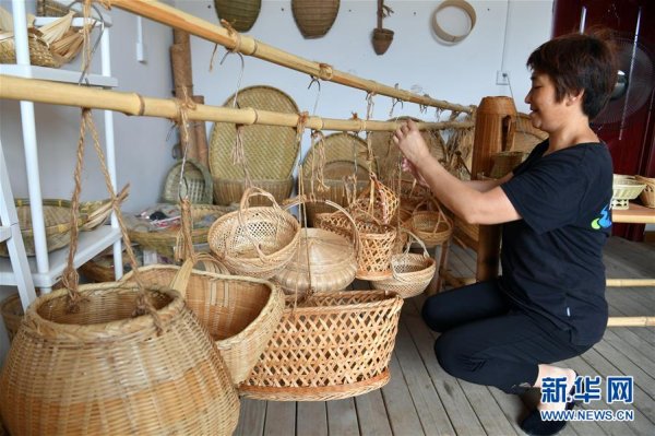 店員在田鋪大塆一家文創紀念品店內整理竹編產品(6月12日攝)。新華社記者 李嘉南 攝
