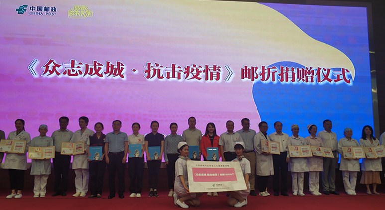 活動(dòng)中還舉行了《眾志成城?抗擊疫情》郵折捐贈(zèng)活動(dòng),一直以來,中國郵政堅(jiān)持以發(fā)行郵票的方式紀(jì)念、支援國家發(fā)生的重大災(zāi)害、重大疫情,并將郵票發(fā)行收入捐獻(xiàn)用于救災(zāi)抗疫。此次中國郵政將向中國紅十字會(huì)總會(huì)捐贈(zèng)郵票和郵品收入2800萬元,向奮戰(zhàn)在抗擊疫情一線的近30萬名醫(yī)務(wù)工作者捐贈(zèng)價(jià)值1500萬元的定制郵折,共計(jì)4300萬元。這是近年來中國郵政發(fā)行抗疫救災(zāi)郵票捐贈(zèng)額最高的一次。本次捐贈(zèng)儀式上,中國郵政集團(tuán)有限公司云南省分公司向云南省衛(wèi)生健康委捐贈(zèng)《眾志成城 抗擊疫情》郵折3000個(gè)。
