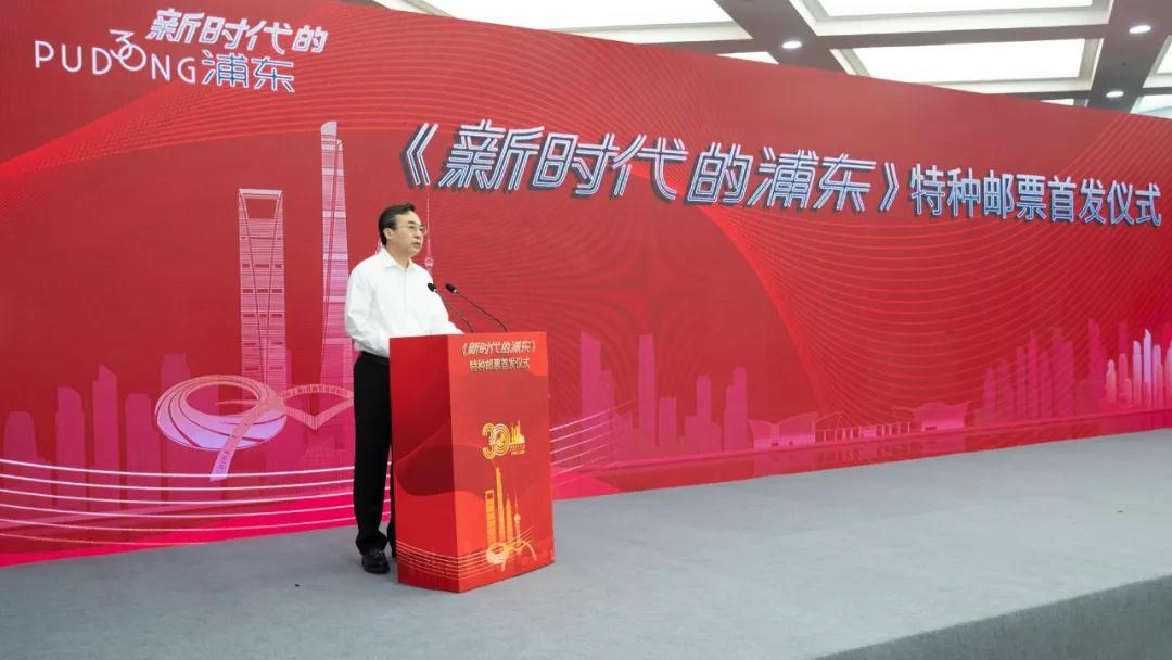 7月20日,《新時代的浦東》特種郵票首發(fā)儀式在上海舉行,方寸間展示浦東開發(fā)開放30年取得的輝煌發(fā)展成就。上海市委副書記、代市長龔正為特種郵票揭幕。國家郵政局黨組書記、局長馬軍勝,中國郵政集團有限公司黨組書記、董事長劉愛力,上海市委常委、浦東新區(qū)區(qū)委書記翁祖亮分別致辭。上海市委常委、宣傳部部長周慧琳主持儀式。上海市副市長湯志平,國家郵政局黨組成員、副局長趙民,中國郵政集團有限公司副總經(jīng)理康寧出席??祵幭驕酒劫浰途幪枮?01號郵票。
