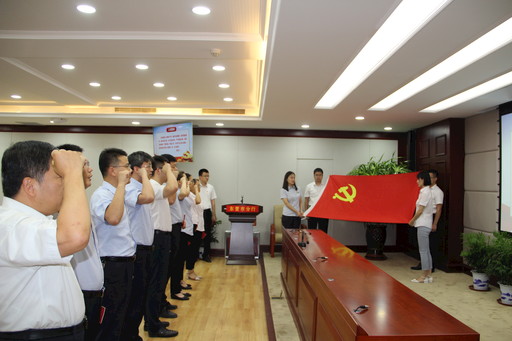 為慶祝中國共產(chǎn)黨建黨99周年,教育引導全行廣大黨員增強“四個意識”、堅定“四個自信”、堅決做到“兩個維護”,充分發(fā)揮黨員先鋒模范作用,郵儲銀行東營市分行黨委近日組織開展機關(guān)黨支部“紅色七月”聯(lián)合主題黨日活動。主題黨日活動以全體黨員莊嚴的入黨宣誓儀式拉開序幕。