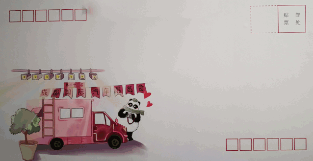 郵戳部分結(jié)合成都國際車展標(biāo)志設(shè)計(jì),選用流線型超跑元素結(jié)合熊貓郵局IP形象,豐富視覺表現(xiàn),外觀更是采用圓形鋸齒輪廓,區(qū)別于傳統(tǒng)郵戳形態(tài),給人耳目一新的感覺。