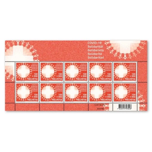 4月6日,瑞士郵政發(fā)行抗擊疫情附捐郵票,全套1枚。郵票面值1法郎,附捐5法郎,按照5法郎出售,表明瑞士郵政提供無償服務。這是第一套抗擊疫情附捐郵票。郵票圖案表達了瑞士民眾攜手抗疫的決心,捐款所得全數(shù)交瑞士團結基金會和瑞士紅十字會用于應對疫情,郵票以全張為單位在瑞士郵政官網(wǎng)出售。