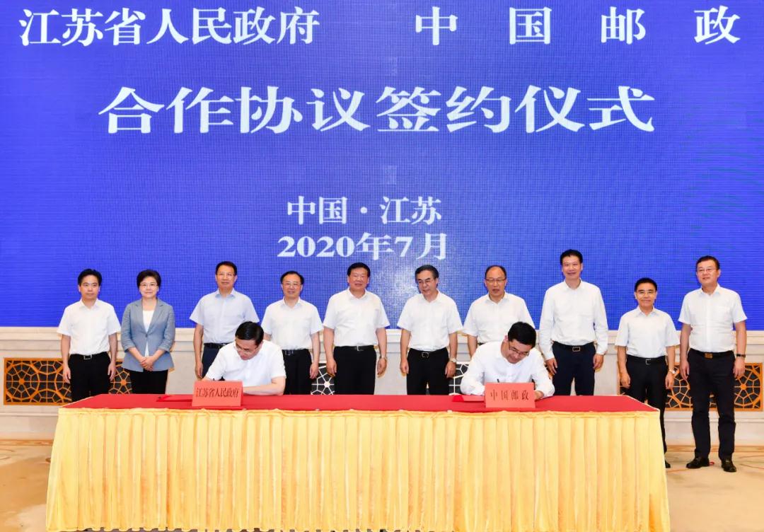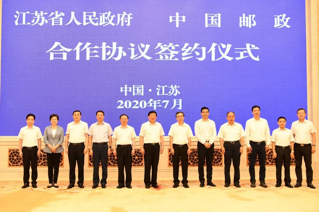 7月30日,中國郵政集團(tuán)有限公司與江蘇省人民政府在南京簽署戰(zhàn)略合作協(xié)議。江蘇省委書記婁勤儉、省長吳政隆會見中國郵政集團(tuán)有限公司黨組書記、董事長劉愛力,黨組副書記、總經(jīng)理張金良一行,并共同出席簽約儀式。江蘇省委常委、省委秘書長郭元強(qiáng),副省長費(fèi)高云,南京市市長韓立明,省政府秘書長陳建剛,集團(tuán)公司副總經(jīng)理康寧參加有關(guān)活動。