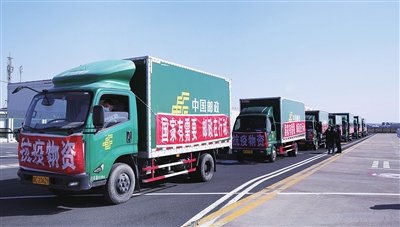 黑龍江郵政在疫情防控期間及時調配車輛運輸抗疫物資。□趙欣娜 攝