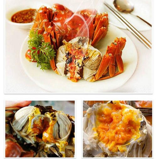 陽澄湖大閘蟹是江蘇省蘇州市特產(chǎn),更是中國國家地理標(biāo)志產(chǎn)品。 陽澄湖大閘蟹又名金爪蟹。產(chǎn)于蘇州陽澄湖。蟹身不沾泥,俗稱清水大閘蟹,體大膘肥,青殼白肚,金爪黃毛,肉質(zhì)膏膩。農(nóng)歷9月的雌蟹、10月的雄蟹,性腺發(fā)育最佳。煮熟凝結(jié),雌者成金黃色,雄者如白玉狀,滋味鮮美。