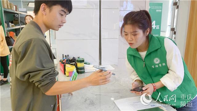 “同學(xué),請掃描二維碼,填寫您的寄件信息。”9月24日10:30,在重慶工商職業(yè)學(xué)院校園郵驛內(nèi),物流管理專業(yè)大二學(xué)生劉沁渝微俯著身子,熟絡(luò)地向前來寄件的同學(xué)介紹包裹收寄流程,驗視、打包、計量、打印一氣呵成:“請拍下您的快遞單號,直接搜索單號就能查詢到物流情況。”