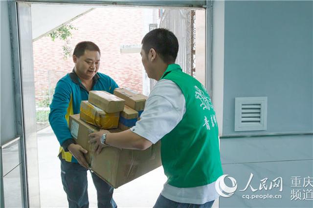 校園郵驛工作人員正在收快遞。中國郵政重慶市分公司供圖