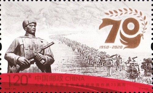 中國郵政定于10月25日發(fā)行《中國人民志愿軍抗美援朝出國作戰(zhàn)70周年》紀念郵票一套1枚。