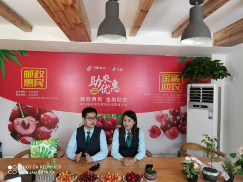 青島郵政開展助農(nóng)櫻桃采摘直播活動。(央廣網(wǎng)發(fā) 辛立寶攝)