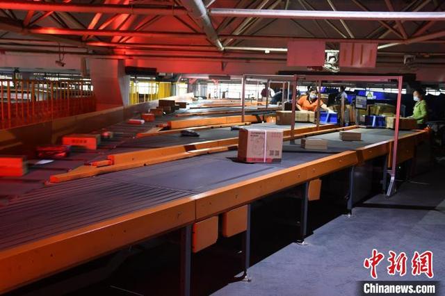 工作人員正在整理包裹。 唐小晴 攝