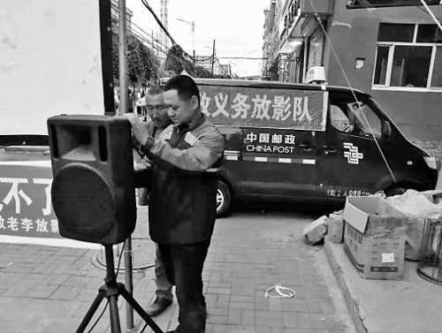 “今年這不是要冷了嗎?我最近放的一場(chǎng)電影是《百團(tuán)大戰(zhàn)》,再放就得等開春了。”近日,在吉林省磐石市明城鎮(zhèn)休閑廣場(chǎng),磐石市郵政分公司明城支局郵遞員李樹山告訴《中國(guó)新聞出版廣電報(bào)》記者,最近一次放電影有七八十人來(lái)觀影。在小鎮(zhèn)上,很多人都是通過(guò)看電影而熟識(shí)的。