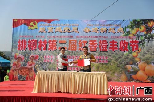 近日,防城港上思縣排柳村與上思縣郵政分公司簽訂了2020年紅香橙銷售推廣的合作文件,這標志著中國郵政將全面介入排柳村紅香橙的線上銷售工作。