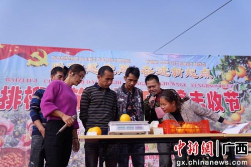 此間,上思縣那琴鄉排柳村第二屆“紅香橙豐收節”在該村百馱屯舉行,排柳村本土文藝隊伍以歌舞、壯話快板、小品等形式展現該縣漢、壯、瑤等多民族和諧共處慶豐收的美好景象。在現場還進行了紅香橙“果王”和“甜王”爭霸賽,評選出重1.01斤的大個頭“果王”和含糖量19.4%的“甜王”。