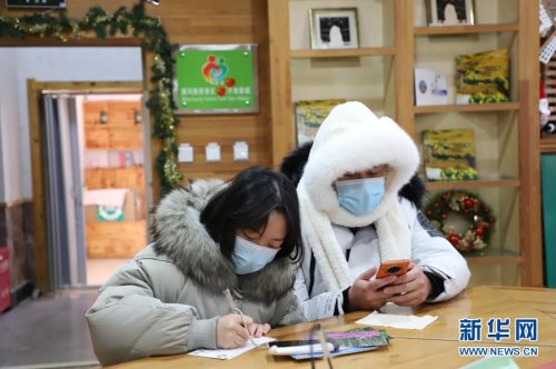 12月28日,游客在北極村郵政支局為親友寫明信片。